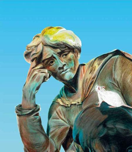 « Être ou ne pas être, telle est la question » : Hamlet illustre par cette phrase le doute existentiel sur le sens de la vie. Ici, la souris de laboratoire l’interpelle, le priant de considérer sa propre existence dans le même continuum philosophique, celui de la dignité et de l’éthique.